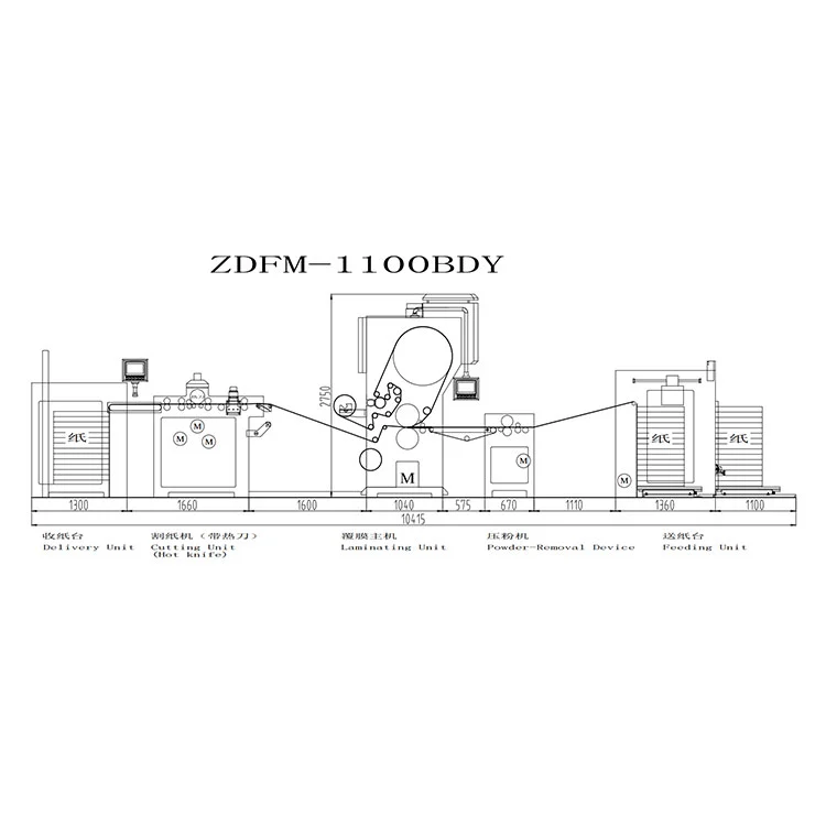 చైనాలో ప్రముఖ లామినేటింగ్ మెషిన్ తయారీదారుగా, హాంగ్కియాంగ్ ఫ్యాక్టరీ యొక్క అధిక నాణ్యత గల ఇంటెలిజెంట్ సర్వో హాట్ నైఫ్ పౌడర్-రిమూవల్ లామినేటింగ్ మెషిన్ (మోడల్ ZDFM-BDY) 14 సర్వోస్ సిస్టమ్, సెగ్మెంటెడ్ ఎలక్ట్రోమాగ్నెటిక్ హీటింగ్ రోలర్లు మరియు ఆటోమేటిక్ పౌడర్ రిమూవల్ ఫంక్షన్లను అనుసంధానిస్తుంది సినిమాలు. ఒక నిమిషంలో ఒక-క్లిక్ పరిమాణం మార్పిడి, 100 m/min వరకు ఉత్పత్తి వేగం మరియు అద్భుతమైన స్థిరత్వంతో, ఇది తరచుగా ఆర్డర్ మార్పులు మరియు అధిక-నాణ్యత పూత ఫలితాలతో అనువర్తనాలకు అనుకూలంగా ఉంటుంది.